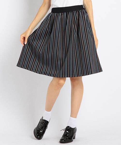 マルチストライプ柄で仕上げた、トレンド顔のスカートです。ふんわりとボリューム感のあるシルエットながら、縦ラインを強調する柄ですっきりと穿けます♪トップスINした時のアクセントにもなる、配色カラーのウエスト部分にも注目です。