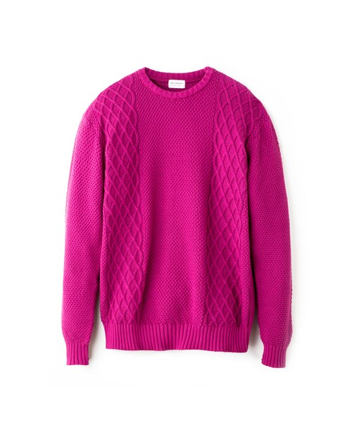 スラングで「簡単・心配ない」という意味を持つプルオーバーニット。インビスタ社のナイロン素材【CORDURA®】とコットンを混紡した生地は高い摩擦強度を持ち、トートバッグやバッグパックなどの干渉による毛玉ができにくいという特徴を持っています。厚みのある5ゲージのボディに製品後染め加工を繰り返し施すことで、陰影のある深い色味と立体感のある表情に仕上がっています。クラシカルなケーブルニットを都市空間にフィットさせた逸品です。オリジナルジップバッグ付き。MADE IN JAPAN. Sサイズ/着丈:66cm 身幅:104cm 袖丈:62cm Mサイズ/着丈:70cm 身幅:110cm 袖丈:63.5cm Lサイズ/着丈:74cm 身幅:116cm 袖丈:65cm
