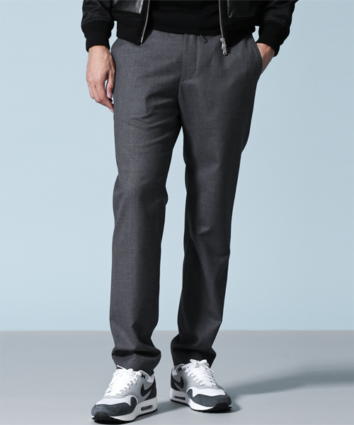 ◆nano・universe Library◆(ナノ・ユニバース ライブラリー)『ドレッシーに穿きこなせるイージーパンツ』 スラックスライクな見た目に、ナチュラルストレッチ生地とスピンドルを備えたイージーパンツ。 ウエストゴム+スピンドルにより、正ウエストでも腰穿きでもお楽しみいただけます。 カジュアルな場面はもちろん、ドレス感のあるコーディネートにもぜひ取り入れたい一本です。 ナチュラルストレッチ素材を使用 上品な生地感を持つ、ミルドサージを素材に使用。 糸の撚りによって生まれる、柔らかさとストレッチ性が特徴です。 これにより穿きやすく、アクティブなクオリティを実現しています。 model RIHITO:H189 B98 W78 H95 着用サイズ:48