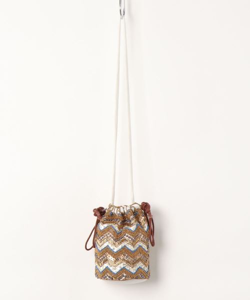 \コーディネートのポイントに★コンパクト巾着/表面のスパンコールやビーズがキラっと輝き、コンパクトながら存在感たっぷりで、コーディネートのポイントになるバッグです。丸底のマチ付きで、型崩れを防ぎます。規則的に並んだビーズが織りなす模様は繊細で、おしゃれなアイテムとしてオススメ。ビーズアイテムをコーデに1つ取り入れるだけで、グンと女性らしさを強調することができます。シンプルな無地ワンピースや、Tシャツ×デニムのカジュアルコーディネートなどとの相性◎です。