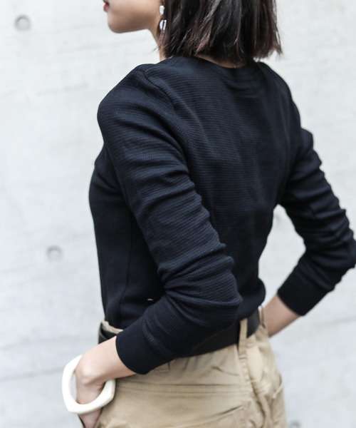 何枚でも持っていたい、コットンワッフルロンT。季節を問わずオールシーズンで使えるワッフル素材のカットソー。 近所のコンビニやお散歩に出かけるときのワンマイルウェアとしても使える。 インナーとしても主役としても着映える立体的なサーマル生地がシンプルながらにお洒落。 直接肌に触れるから、コットン100%の優しい風合いに仕上げました。 (杢グレーのみ混率が異なります) シャツやジャケットに合わせたクールな着こなしから パーカーやカーディガン、デニムなどに合わせたいつものカジュアルスタイルにも◎ 様々なシーンに着まわせるシンプルなコットンTシャツは Mー4Lサイズとサイズ展開も豊富なのが嬉しい♪ 【備考】 裏地:なし 伸縮性:あり 透け感:淡色のみややあり