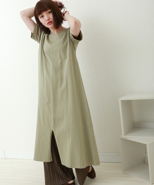 フロントスリットがさりげなく目を惹くデザインです。その日の気分で変えられる前後どちらでも着用できる2WAYデザイン。着丈はロングワンピースのバランスなので、一枚で主役としてはもちろんパンツやスカートどちらと合わせても旬なスタイルが完成です。無地なので着回しは無限大です。※OE天竺なので生地の目がざっくりとして表面感があり、しっかりとした生地です。※屋外の光や照明の当たり具合、パソコンなどの閲覧環境によって実際の色味と異なって見える場合がございます。予めご了承ください。