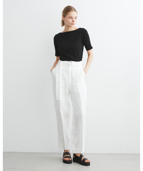トレンド感のあるシルエットのパンツ。ウエスト位置を高くし、裾にやや広がりを持たせることで、抜け感のあるシルエットに。センタープレスを効かせてきちんと感もプラス。ステッチワークが施された共布のベルト付き。高品質なフレンチリネンを日本国内で製織した生地を使用。特殊な加工を施して、表面感のある風合いに仕上げています。目が粗めで厚手なので、しっかりとした生地感が特徴です。■HIGH STREET COLLECTIONジャケットスタイルを中心にハンサムでリュクスなライン、「HIGH STREET COLLECTION(ハイストリート コレクション)」。クラシックなセットアップやワンピースなど、繊細なドレス感のあるアイテムをラインナップ。◆トラディショナル ウェザーウェア◆1974年にゴム引きコートからスタートした英国マッキントッシュ社のブランドで、英国の伝統と今の気分を感じさせるコレクションをリリースしています。キルティングジャケットやコート等の 英国伝統のアウターウェアは、昔のアーカイブからリデザインされたものが多く、他にジャケット、ワンピース、シャツなどの毎日使えるベーシックなアイテムが充実しています。*商品のお気に入り登録をおすすめします再入荷や、ラスト1点の通知を受ける事ができます。お買い物リストの管理に是非ご利用ください。ブランドのお気に入り登録もご一緒にお願いいたします。