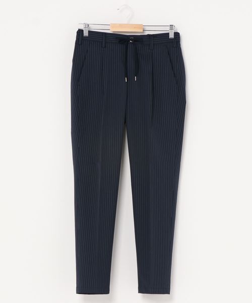 上質な光沢とストレッチを兼ね備えた薄手で着心地の良いポリエステル/ウール素材。ウール混ですが春夏に適したシャリ感のある薄手の素材です。 太すぎないゆったり目の新シルエットのドローコードパンツでリラックス感を演出しています。 同素材のジャケット感覚で着たいブルゾンとのSET-UPでの着用もオススメ致します。