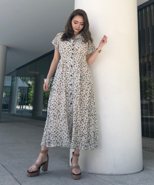 落ち着いた色味の花柄がアンティークシックな雰囲気を醸し出すワンピースです。 はしごレースで切り替えたウエストのデザインがアクセント!ゆるやかに広がるシルエットは、身体のラインを隠しつつ女性らしい美スタイルを演出してくれます◎