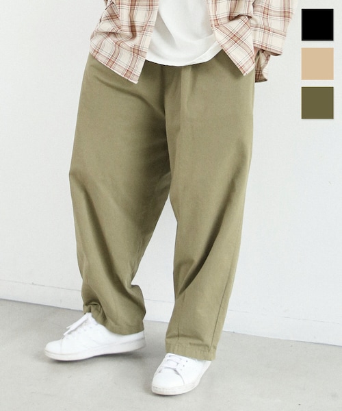 【商品説明】 もはやワードローブの定番になったワイドパンツ。 ウェストのタックと裾に加えたダーツで、スタイリングの主役になるほど主張あるボリューム感を持たせたサーカスパンツがオススメ。 ライトな生地を使用しているので、見た目のボリュームに反して履き心地もとても軽快です。 ウエストに配した太めの同色スピンドルも、スタイリングのアクセントに。 ビッグシルエットのスウェットやパーカーなどのアイテムでストリートライクに合わせてもらうのはもちろん、キレイ目・クラシックなコーディネートのハズしとして合わせるのもとてもおすすめ。 お手持ちのトップスに合わせるだけでも、鮮度ある雰囲気抜群のコーディネートを楽しめます。 メンズライクなリラックスコーデが好きな女性や男性にもオススメのユニセックスアイテムです。 カーキ/ベージュ/ブラックの3色展開です。 【サイズ】 ウェスト:68-100cm ヒップ:128cm 股上:39cm 股下:60cm もも周り:80cm すそ周り:42cm 【モデルの身長】 163cm 155cm ※モデル着用画像は光の当たり具合で色味が違って見える場合がございます。 実物の商品の色味は物撮り画像をご参照ください。 MADE IN KOREA