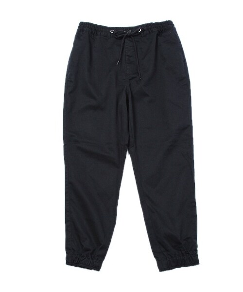 3ポケットのコットンツイルパンツです。裾部分にゴムが入っているので、裾を上げて足首を見せて履いても◎。わたりにゆとりがあるので、履きやすく、アクティブに動いても楽チンです。ウエスト部分はゴムと紐になっているので、調節可能です。アウトドアでもガンガン履いていただける一本です。