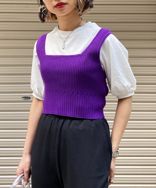 ◆今年トレンドのニットビスチェ◆ これからのシーズン、TシャツやOPとの レイヤードスタイルに活躍が期待できます◎ さらりとした風合いのニットなので、 夏に向けても爽やかに着用可能! 1枚で旬のスタイリングに仕上がるおすすめアイテムです。 ★おすすめスタイリング★ 長すぎない丈感なので、パンツはもちろんスカート合わせもおすすめです。 インナーをブラウスやカットソーにすると雰囲気を変えて着て頂けます。 メリハリが欲しい方は、後ろの紐をきつめに結ぶとすっきりしたスタイルを叶えてくれます。 ※撮影環境により、光の当たり具合で 色味が違って見える場合があります。 あらかじめご了承下さい。