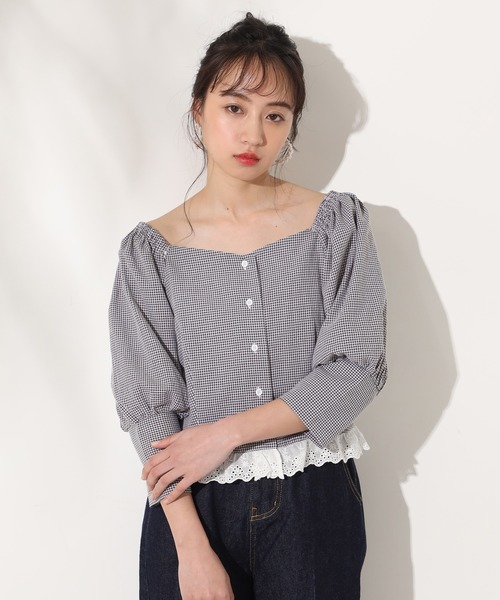 ~NICECLAUP 2020 Spring Collection~ ■夏ムード上がるオトナブラウスが登場!! 裾のさりげないレース使いがポイントになったスクエアネックブラウス。 オフショルダ-にもなるので一気にオンナ度アップ!! 袖のカフスデザインで手首の華奢魅せも叶います。 ガーリーなテイストからパンツ合わせまでマルチに使えます。 ※サンプルのため実際より首元が大きくなったもので撮影しています。 ※ベージュ系その他とブラック系その他は細かいギンガムチェックです。 ※サンプルでの撮影のため、実際のものと仕様や色が異なる場合があります。 ※室内、室外での撮影のため実際より明るく映っていたり、暗く映っていたりする場合がございます。 ※品質表示を必ずご確認下さい。