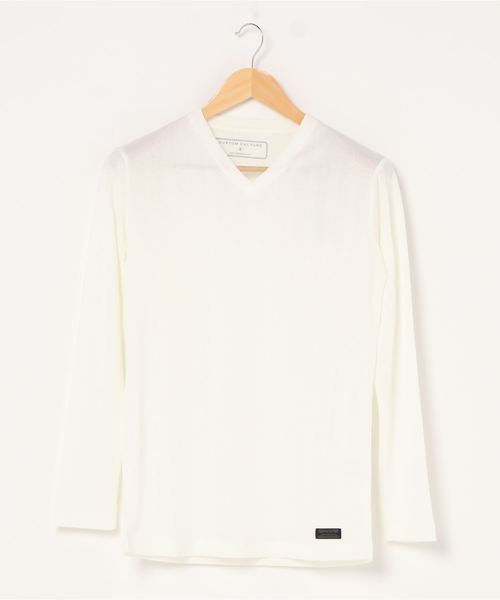【CUSTOM CULTURE】 ヘリンボーンジャガード ロンTEE 織柄でヘリンボーン柄を表現。 浅めのVネック仕様で、一枚でも、ジャケット・アウターのインナーとしても着れるデザインになっています。