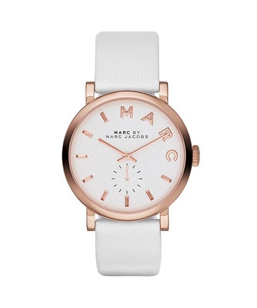 A cleanly styled face with a subseconds dial and logo indexes tops a polished leather-strap watch with everyday versatility. 37mm case; 18mm band width. Buckle closure. Quartz movement. Mineral crystal face. Stainless steel/rose-gold plating. By MARC BY MARC JACOBS; imported.