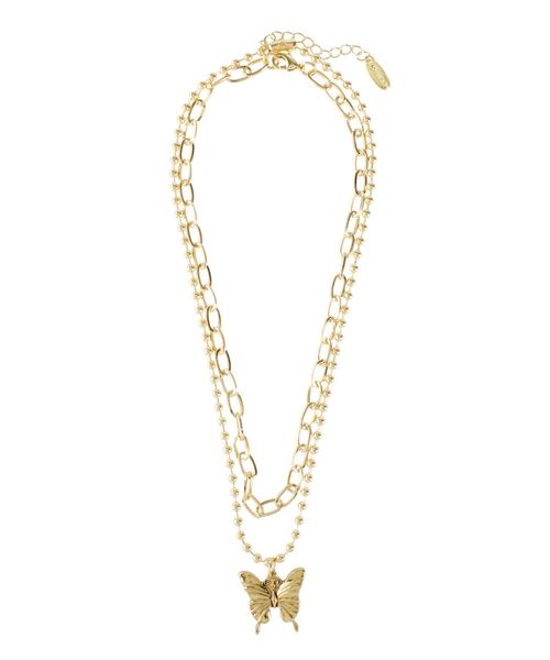 バタフライのモチーフがキュートなダブルチェーンネックレス。 ファンシーながら、太めのチェーンがエッジィなひと品。2点使いはもちろん、お手持ちのネックレスとあわせるのもおすすめです。【jouetie ZOZOTOWN お買い物ガイド】▼商品をお気に入り登録!完売商品の再入荷やラスト1点の通知、セール開始時にお知らせ!▼"jouetie(ジュエティ)"をお気に入りブランドに登録!新商品や再入荷など、ブランド最新情報をいち早くお知らせ!是非、ご活用いただきお買い物をお楽しみください◎【jouetie official Instagram】jouetie_officialブランド最新情報をいち早くチェック!新作情報や着回し、お得な情報などをご紹介♪