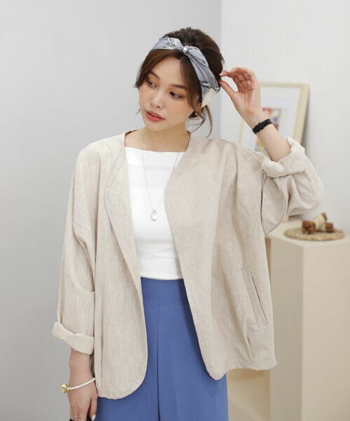 リネン混素材でカジュアルなムードに仕上がったジャケット! ※WEARに記載してある金額と、DHOLIC通販サイトに記載してある金額にシステム都合上、稀に誤差が生じます。正しい金額はDHOLIC通販サイトに記載された金額です。