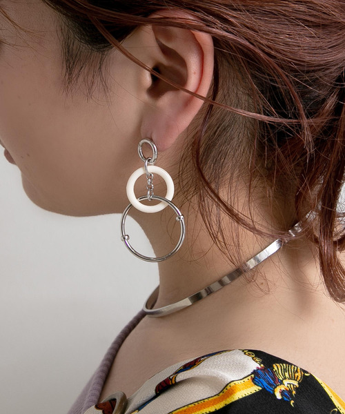 リングを重ねたデザイン性のあるシルバーピアスです。 小さなチェーンディティールが組み込まれており、クールな印象を演出。 揺れるデザインで、華奢な女性らしさも忘れません。 カラーコンビネーションで、他には無いおしゃれな印象に◎ 【お買いものをよりもっとお楽しみいただく為のおススメ機能について】 ▼商品のお気に入り登録完売カラーの再入荷通知や、ラスト1点の通知、セールの通知も受け取ることができます! ▼ブランドのお気に入り登録新商品や再入荷など、いち早くブランドのお得な情報を受け取ることができます! もっとお得な情報をゲットしていただく為にも是非ご利用ください! <価格改定のお知らせ> 原材料高騰に伴い2022年5月12日より価格改定をさせて頂きます。 ご了承下さいますよう、お願い申し上げます。