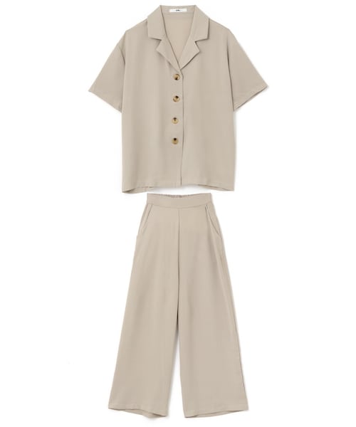 さらりとした素材感がシーズンムードを盛り上げてくれるシャツとパンツのセットアップ。 シャツのオープンカラーが大人っぽさと抜け感を演出。 パンツはゆったりしたワイドシルエットで履き心地が抜群なのも嬉しいポイント。 ★シャツとパンツの2点セットです。 ★パンツはバックウエストゴム入りです。 ★パンツはポケット付です。