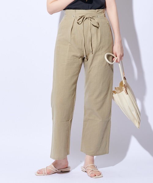 【2020SS natural couture】春夏の定番としておすすめの綿麻ワイドパンツ綿麻素材が春夏も涼しく穿けるワイドパンツ。フロントにはタックを施し、ウエストから落ちるマニッシュなシルエットがモードな抜け感を演出。バックウエストゴムなので、トップスとのバランスを見ながらウエスト位置を微調整できるのもうれしいポイント。綿と麻をブレンドしたファブリックはサラッとした穿き心地とナチュラルな雰囲気を作りだします。ジャケットやロンT合わせでマスキュリンなスタイルから、ブラウスや肌見せノースリーブでフェミニンなスタイルにまで、幅広くコーディネートしていただけます。同素材の【311240200 綿麻シャツジャケット】とセットアップとしても着用していただけます。