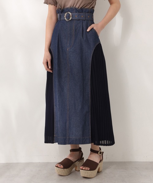~NICECLAUP 2020 Spring Collection~■デザイン性の高いロングスカートが登場!!両サイドのプリーツ切替が今年らしく、コーディネートの主役に!動くたびに揺れるプリーツは街中でも目を惹くこと間違いなし◎ウエストは後ろだけゴム、前ファスナーで着脱も楽です。共地のベルトはべっこう風のバックルがお洒落。コンパクトなトップスやブラウスを合わせてレディに。Tシャツでカジュアルダウンするのもオススメ。※サンプルでの撮影のため、実際のものと仕様や色が異なる場合があります。※室内、室外での撮影のため実際より明るく映っていたり、暗く映っていたりする場合がございます。※品質表示を必ずご確認下さい。