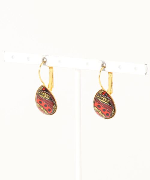耳元にも個性を。しずく型のガラスの中に、カラフルでエネルギッシュなアフリカン柄を表現したピアス。選ぶ楽しさのあるデザイン♪毎日を自分らしく飾ろう。 ※こちらの商品は1点1点職人による手作りとなります。その為、形や色合い・模様など若干異なる場合がございます。あらかじめご了承ください。 Amina Collection Co.,LTD.