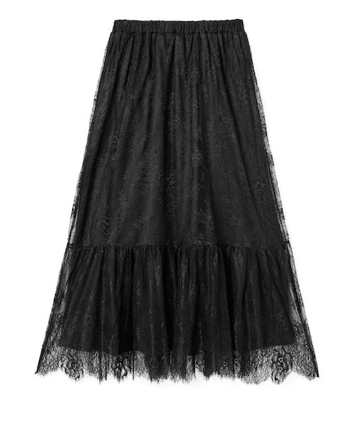 花柄レースのボディがクラシカルな印象を与える。 透け感のあるマテリアルが、エアリーな雰囲気漂うポイント。 歩くたびに揺れるシルエットが大人の魅力を醸し出す。 ★裁断の関係で、柄の出方が写真と多少異なる場合があります。 ★ウエストゴム入りです。 ★裏地付きです。