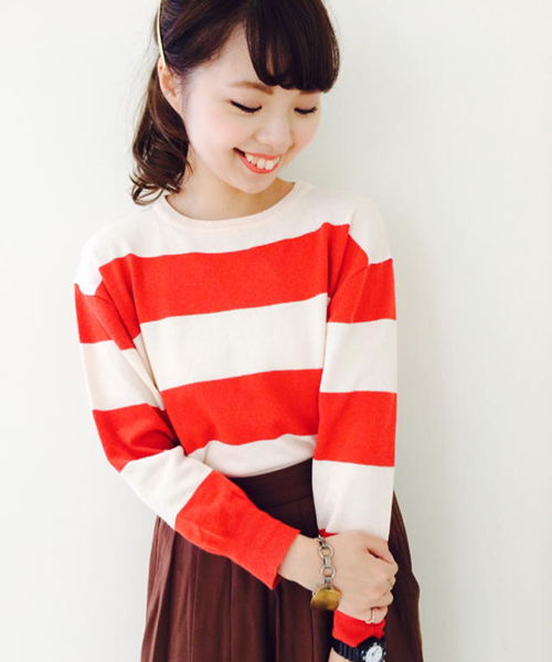 Kastane(カスタネ) 太めのボーダーが今年っぽいデザインです♪シルク混なので肌触りも◎ボーダーは何枚あっても使えます!ハーフ丈のキュロット合わせがオススメです☆