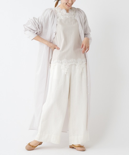ピュアルセシン 2020 Spring collection “graceful nature” サスティナブルからくる地球や環境をいたわる時代の中、植物や花たちが生い茂る庭園をイメージ ◇独特な優雅さが漂うシャツワンピース◇ サラリとした肌触りでありながら、麻のような感触が感じられる 独自の魅力を持つローン生地を使用した上品なシャツワンピース。 袖付け部分を肩より落としたドロップショルダーと、ボリューム感ある袖が女性らしい柔らかさを演出。 ワンピースとしてはもちろん、前ボタンをあけて羽織としても楽しめます。 ・優雅さ漂うシャツワンピース ・汗ばむ時期も快適な着心地 ・コットン100% ・1枚で着るのはもちろん、羽織としても活躍 ※撮影場所やお使いのモニター環境により若干お色味が異なる場合がございます。特にロケの撮影では明るく見える傾向にございます。 ※予約商品はサンプルで撮影をしております。若干の仕様が変更になる場合がございますので予めご了承の上ご注文くださいますようお願いいたします。