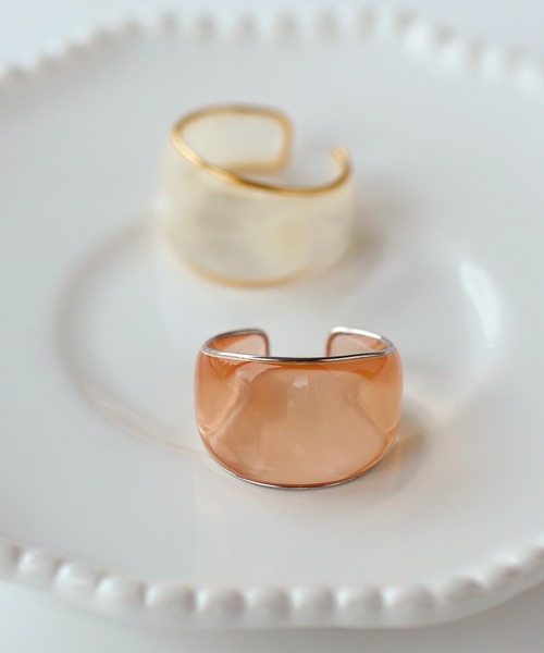 艶めきのあるクリアカラーが手元に彩りを与えてくれるリング。 ボリュームがあるワイドリングは、デイリーコーデのアクセントにぴったりです! 単品使いはもちろん、お手持ちのリングとのコーディネートも楽しめる優秀アイテム♪ ※ATTENTION※ ■製造・輸送時についた微細なキズや、黒点、気泡・内包物、ゆがみが見られる場合がございます。 ■マーブル柄の入り方や、サイズには個体差がございます。 上記は不良の対象外となりますので、予めご了承くださいませ。 ■お送りする商品のプライスタグに「13号」と記載がございますが、正しくは「13~14号」です。予めご了承くださいませ。 <価格改定のお知らせ> 原材料の高騰により、2024/11/01から価格改定をさせて頂きます。 商品タグに旧価格記載のものが混在している場合がございますが、ご了承下さいますようお願い申し上げます。