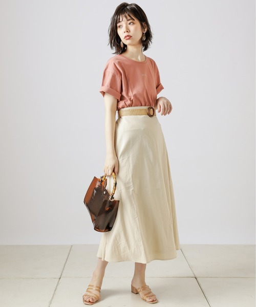 【2020SS natural couture】 フレア感が上品な大人の女性らしさ漂うスカート 女性らしいAラインを演出してくれるフレアシルエットが美しい一着。タックやギャザーを入れずスッキリとした仕立てたウエスト周りは、トップスインがきれいにまとまり、プレーンなデザインが合わせるアイテムを邪魔しません。シンプルながらもラフィアベルトプラスすることで、タックインスタイルもサマになります。程よいロング丈はフラットシューズやスニーカー合わせでもマッチ。付属のラフィアベルトは取り外し可能なので、手持ちのもので組み合わせるなど雰囲気を変えることもおすすめです。