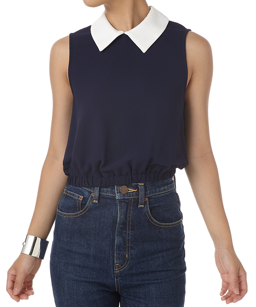 襟と身頃のカラーコントラストがスタイリッシュなトップス☆ 裾をギャザーゴムにすることで、身頃部分にふんわりとした立体感をプラスさせたひとくせ効かせたデザインが◎ ジョーゼットの上品な風合いできちんと感はありながらも、クロップド丈になっているため、カジュアルなムードで着こなせるのもポイント高めです☆ ハイウエストデニムを合わせて、旬顔で着こなしてもカワイイ♪ ブラック:model H171 B76 W57 H88 着用サイズ:1