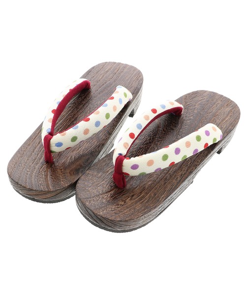 京都きもの町オリジナルの女性下駄です。台は焼桐で、汚れにくく、鼻緒は裏地がふわふわですので、擦れて痛くなりにくい下駄です。また、ゴム底なので、滑りにくく安心です。浴衣に合わせて、オシャレな下駄を合わせてみてはいかがでしょうか。◆下駄は、履きはじめは、鼻緒が堅いので、抜けない程度に少し引っ張り、鼻緒をゆるめてから履くと、少し楽に履けます。【サイズ】F(L)サイズ:台全長約24cm/幅約8.2cm/かかと高さ約3.5cmLLサイズ:台全長約25.5cm/幅約8.5cm/かかと高さ約3.5cm浴衣や夏着物に合わせて、夏祭り・花火大会・フェス・盆踊り・浴衣デートなど※鼻緒は摩擦、水濡れなどにより色落ちする場合があります。※台は強い衝撃を与えた場合、割れる場合がありますのでご注意ください。※危険ですので滑りやすい場所でのご使用は控えてください。※ご覧いただいている環境によって、色みが若干異なって見える場合がございます。※商品加工の過程上、小さなキズ等が致し方なく見える場合がございます。何卒、ご了承くださいませ。※生地の裁断・縫製によって、柄の出方は異なります。※台の削りだしの最終工程は人の手で行っておりますため、商品によって、サイズが若干前後します。【お手入れ・保管について】ご使用後は、布で空拭きしてから陰干し後、高温多湿を避けて保管してください。