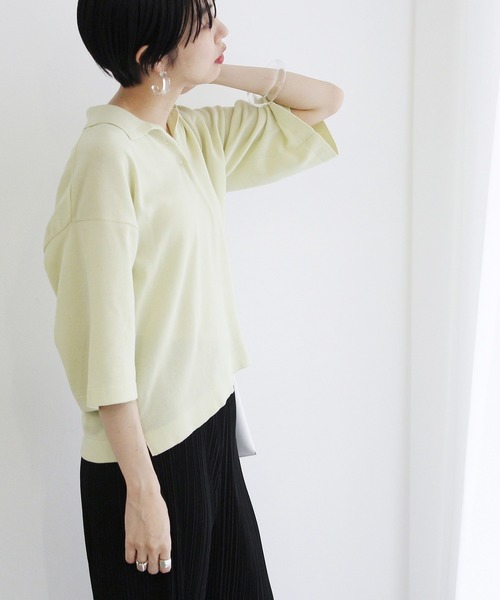 上質な山形ニットのコットンニットポロ繊維、紡績メーカー、染色業が数多く存在する山形県。独自の高い技術により誕生した上質な製品が、国内だけではなく海外においても【山形ニット】として注目を集めています。柔らかなコットンニットを使用したポロシャツ。しっかりした編地ですが、空気をはらむので重くならず軽くさらっと着ていただけます。 クラッシック回帰ということもあり、今っぽくもありつつどこか懐かしさも感じられるポロシャツは注目のアイテム。袖は太めで、メンズライクなシルエットでありながら着丈を女性らしくすることで、デニムにもスカートにも合わせやすくなっています。上質な山形ニットをコットンニットで味わってみてはいかがでしょうか。 ※画像の商品はサンプルです。お届けする商品に仕様・サイズ等の変更が生じる場合がございます。予めご了承ください。 ※ロケ撮影画像は、光の当たり具合で色味が異なって見える場合がございます。商品の色味は、スタジオ撮影の画像をご参照ください。