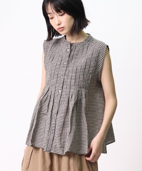■■■凛とした雰囲気のノースリーブブラウス■■■リネン素材を使用したバンドカラーノースリーブブラウス。胸元のピンタックが女性らしいデザイン。サラリとしており、通気性の良い生地なので暑い季節にぴったりです。ピンタックが凛とした雰囲気をだしてくれて、見た目も涼し気。首元もスッキリしており、羽織りものとの相性も◎たっぷりとワイドな身幅で、ふんわり広がるフレアーなシルエットが女性らしい一枚です。【 ubasoku / ウバソク 】日々の暮らしに寄り添う・・・少しのディテールにこだわり・トレンドとの調和を持つ・・・大人のナチュラル服を提案しています。 **************************生地の厚み:薄め伸縮性:なし透け感:若干あり光沢感:なし洗濯機:不可(手洗い可)******************************着用コメント年齢:20代後半/身長:157cm/普段サイズ:Mサイズ感:ウエストにゆとりがあり、締め付けはなく着れます。ウエストに向かってのフレアデザインが◎着心地:さらりとしたリネン素材で涼しい。フレアシルエットでゆったりリラックスして着れます。******************************【おすすめ情報】 季節:春 夏 秋 対象:レディース 特徴:リネン 麻 ノースリーブシャツ 人気:おしゃれ 可愛い カジュアル ナチュラル用途:旅行 運動会 自転車 散歩 普段 お出かけ 買い物 プレゼント ギフト 特記:アパレル シャツ ブラウス 女子 普段用 自宅用 外出用 お気に入り♥ にご登録いただきますと新作入荷、セール開始などなど、いち早くお得な情報をお知らせ致します! ※お取扱いにつきましては、商品についている品質表示をご確認ください。※ご覧いただいておりますPC、スマートフォンの環境により、 若干製品と画像の色が異なる場合がございます。予めご了承下さい。