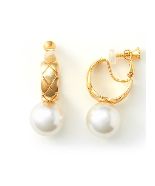 太めのフープにフェイクパールをあしらったイヤリング。 ゆらゆらと動くディテールが、控え目ながらもコーデのアクセントに。 ★素材の特性上、カラーが、写真と多少異なる場合があります。 ★シリコンカバー付なので落ちにくく痛くなりにくい仕様です。