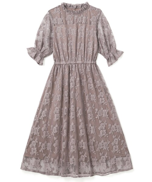 クラシカルなフラワーレースで仕上げ、上品かつ女性らしさ惹き立てるワンピース。 フリルネックやデコルテを透かせた所がフェミニンなポイント。 キャンディスリーブが可愛いらしさもプラスする贅沢なアイテム。 ウエスト切替えで腰を高く見せスタイルアップ効果も期待出来ちゃう1枚。 ★裁断の関係で、柄の出方が写真と多少異なる場合があります。 ★裏地付きです。 ★ウエストゴム入りです。
