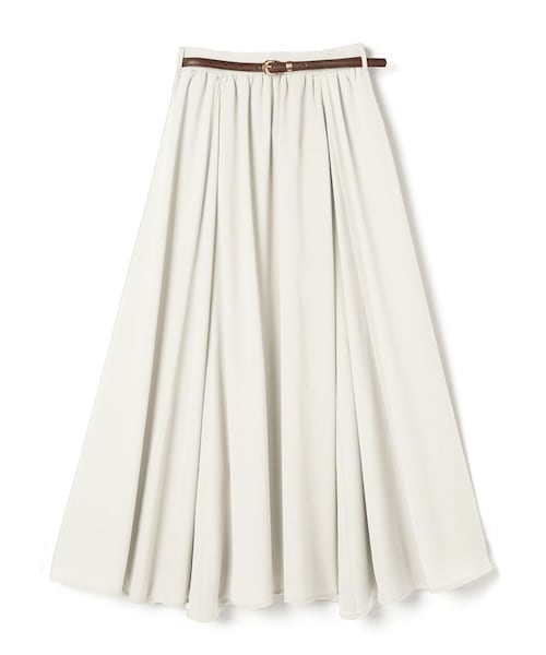 スラブ感のある軽やかな生地で仕立てたフレアスカート。 細身のウエストベルトもついているので、トップスインスタイルもきれいに決まる。 大人カジュアルに欠かせないロングスカートは、手に入れておきたいアイテム。 ★ベルトは取り外し可能です。 ★裏地付きです。 ★バックウエストゴム入りです。