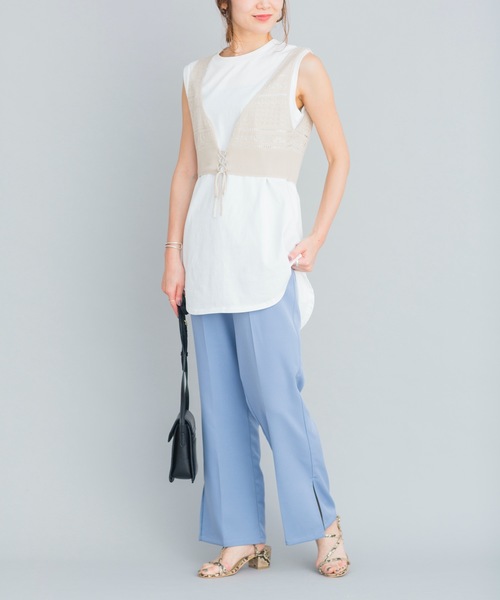 2020 Spring&Summer 《オンラインストア限定》 今シーズンのマストアイテム◎ 今っぽさを演出するパンツがWEB限定で登場! 【Point】 ●サイドにスリットが入ったセンタープレスパンツ ●全体的にスッキリとしたシルエットと 縦のプレスデザインが脚を長く綺麗に魅せてくれます。 ●キレイめながらもバックウエストはゴム仕様になっており、 ストレスフリーな着用感 ●さらりと軽やかな肌触りで、ロングシーズンで着用可能 ●キレイめな印象も兼ね揃えているので、ON/OFFシーン問わず 着回し可能 【オススメStyling】 ・Tシャツやシャツなどとラフに合わせるのもオススメ ・トップスをインして、スタイルアップ効果を狙った スタイリング ・シャツワンピースやカットワンピースとの レイヤードスタイル ----------------------------------------------------------------- 生地の厚さ:普通 伸縮性:ややあり 透け感:なし 裏地:なし 洗濯方法:ご自宅での手洗い可 ----------------------------------------------------------------- ※撮影場所やお使いのモニター環境により若干お色味が 異なる場合がございます。 特にロケの撮影では明るく見える傾向にございます。 ----------《Information》---------- 【商品のお気に入り登録】 →カートに入れる右側の【♡マーク】をクリック! 完売カラーの再入荷通知やラスト1点の通知、 セールの通知を受け取ることができます。 【ブランドのお気に入り登録】 →ブランドタグのページから【♡お気に入りショップに追加】 をクリック! 新商品や再入荷など、ブランドのお得な情報を いち早く受け取ることができます。 是非ご登録頂き、お買い物をお楽しみください◎