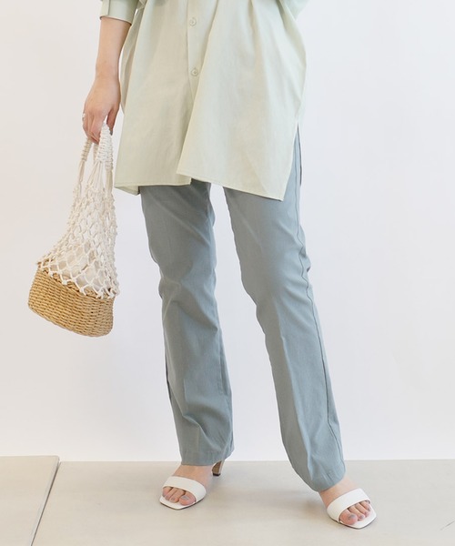 \美シルエットのオトナパンツ/スッキリ見えるストレートラインと、人気の裾フレアのシルエットが一つになった美シルエットパンツ。シルエットがきれいだからこそ、カジュアルトップスとの相性も良く、大人なカジュアルコーデにぴったりなパンツです。春夏を感じる旬のカラーがスタイリングを軽やかに見せ、アクセントを効かせてくれます。丈が長めのトップスやワンピースとのレイヤードにも相性抜群で、万能な一着。******************・スッキリと見えるストレートシルエット・春夏を感じる明るいカラー・膝から裾にかけてフレアなデザインが足長効果◎******************