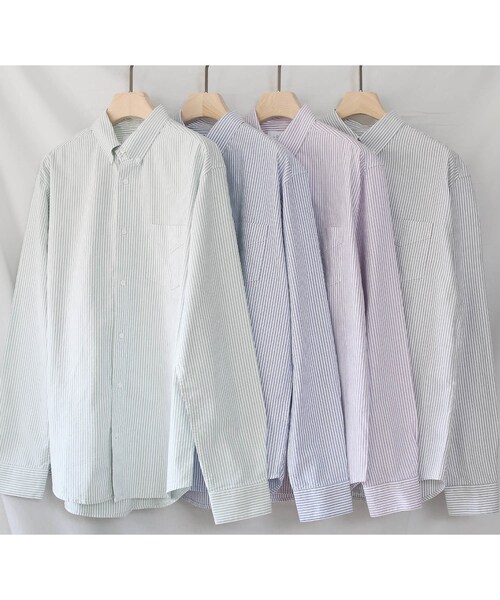 【商品説明】 綿100%オックスフォード素材仕上げのボタンダウン長袖シャツです。 コットンオックスフォード生地で耐久性が良く、着心地が優れています。 全体的なサイズは、単品でもインナーとして着用しても素敵なルーズフィット。 アメカジからキレイめカジュアル、ビジネスやドレッシーなスタイルにまで幅広く着こなせる。 汎用性が高いため一枚は持っておきたいitem。 【素材】 コットン100% 【サイズ】 肩幅:49cm 身幅:53cm 着丈:78cm そで丈:64cm 【モデルの身長】 163cm ※モデル着用画像は光の当たり具合で色味が違って見える場合がございます。 実物の商品の色味は物撮り画像をご参照ください。 MADE IN KOREA
