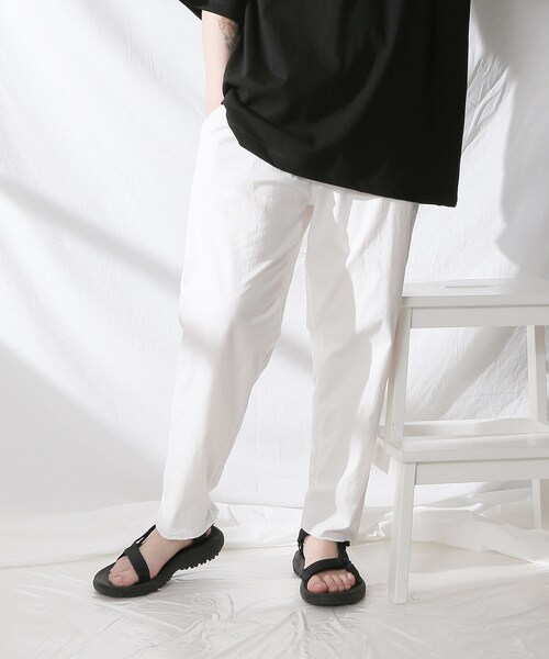 【商品説明】 ナチュラルなフリンジ風裾カット処理が引き立つワイドバンディングパンツです。ワイドなシルエットがデイリーユースに大活躍すること間違いない。 ウエストの紐ベルトが表情をつけてくれるポイントで、トップスをインしてもアウトでもバランスのとりやすい美シルエットが魅力です。ちょうどいいワイドフィット感が様々なコーディネートにマッチするデザインです。 生地を柔らかくするウォッシュ加工作業と、ゆったりめの作りにストレッチが効いているので、リラックスしながらお洒落を楽しむ事が出来るアイテム。とにかく楽ちん!! 【素材】 素材:コットン96% ストレッチ4% 【サイズ】 ウェスト:72-94cm ヒップ:108cm 股上:31cm 股下:62cm もも周り:64cm すそ周り:34cm 【モデルの身長】 163cm ※モデル着用画像は光の当たり具合で色味が違って見える場合がございます。 実物の商品の色味は物撮り画像をご参照ください。 MADE IN KOREA