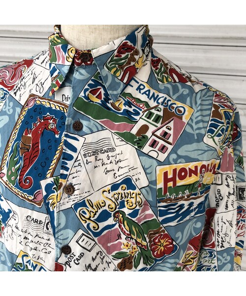 夏の定番レインスプーナー 夏らしいポップなカラーリングにアメリカの地名柄! ココナッツボタンを使用しており良い作りです。 タグは80年代から90年代初期頃までのダイヤモンドヘッドタグ。 歴史やヴィンテージから続くタグの変遷などレインスプーナーはコレクター要素が非常に強いアイテムかと。 サイズ 着丈:66㎝ 肩幅:43㎝ 身幅:56㎝ 袖丈:28㎝ 生産国:TAILORED IN HAWAII 素材:100% SPUN RAYON 表記サイズ:M SHOP:Custom Fever CONDITION B S:ほぼ新品。使用感を感じない美USEDの商品。 A:若干の使用感はあるが汚れやダメージの見受けられない良い状態。 B:経年の使用感があるが目立つ大きな汚れやダメージはない。 C:使用感と部分的に目立つ汚れやダメージがある。 D:過度の使用感と目立つ汚れやダメージがある。着用は可能。 N:デッドストック・NOS・新品 ※実際の色合いとは異なって見える場合がございますが、ご了承ください。 商品番号:2020050410