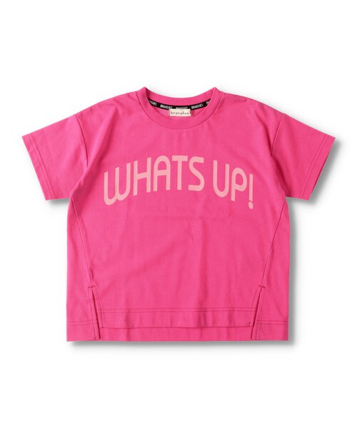 脇から前振りに切り返し、スリットデザインになっているビックシルエットの半袖Tシャツです。シンプルなデザインの中に後ろ襟ぐりにはロゴテープを縫い付けているかっこいいデザインです。 ※80cmから90cmは、首もとがスナップボタン仕様となります。