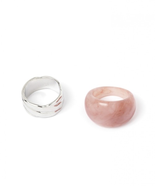 ニュアンスのあるniko and ...オリジナルのリングセット。合わせやすいメタリックのものと、透明感のあるカラー樹脂を使用した今っぽいデザインです。
