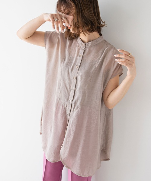 夏らしく涼しげなノースリシアーシャツフロントの重なりがスリットのようになり、歩くたびに表情の変わる新鮮なデザイン。ネック周りをすっきりと見せてくれるバンドカラーが洗練された印象に。ゆとりのあるサイズ感とヒップが隠れる丈感がパンツスタイルとの相性抜群◎暑い季節にさらっと着られる着心地。リラクシーなのに1枚で様になるアイテムです。**********************透け感: ややあり裏地:なし伸縮性:なし光沢感:なし生地の厚さ:薄手**********************※ご覧のモニター環境や撮影環境により実際の商品と多少色味が異なって見える場合がございます。ご理解の程よろしくお願いいたします。【お買い物をよりお楽しみいただく為に】▼商品のお気に入り登録をおすすめします♡をクリックしてください。完売カラーの再入荷や、ラスト1点の通知、セールの際の通知を受ける事ができます。ブランドのお気に入り登録もご一緒にお願い致します。