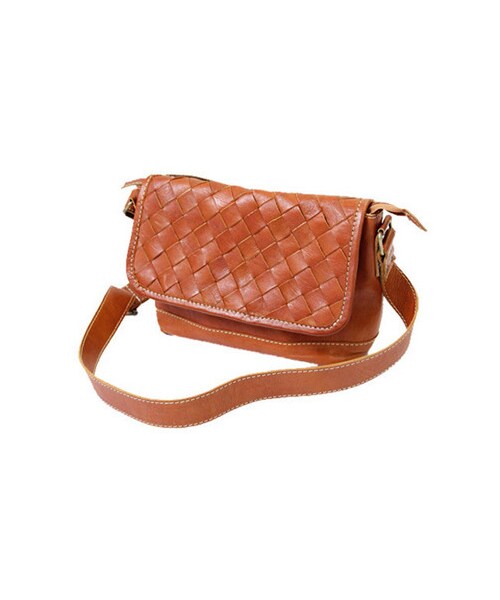 使い込むほどに風合いの出てくるオールレザーを使った小ぶりのショルダーバッグ。マチがあるので荷物もたっぷりと入れて頂け、粗めに入ったステッチも可愛く、フラップ部分が編みこみタイプなので重たい印象になりません。※重さ:534g