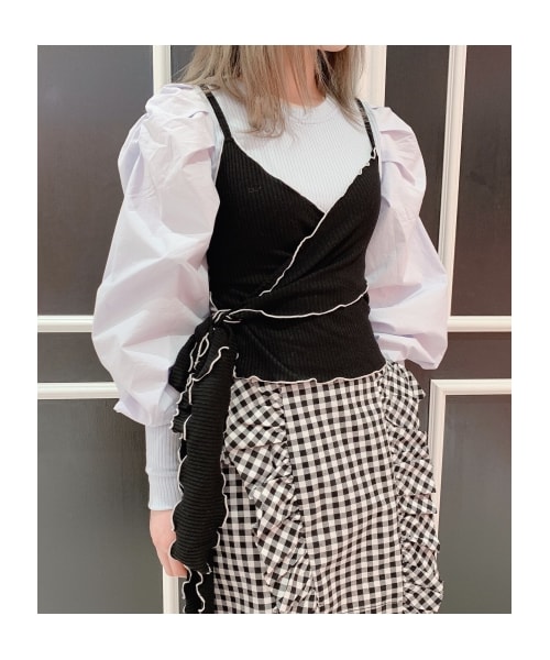 ぱっと目を惹く配色メロウ加工が、フェミニンムードを漂わせるトップス。リボンの結び方をアレンジして、スタイリングに合わせて着こなせるのも魅力です。1枚での着用はもちろん、カットソーやブラウスなどとのレイヤードスタイルを楽しむのもオススメ。※商品画像はサンプルのため、色味やサイズ等の仕様に変更がある場合がございますので、予めご了承ください。