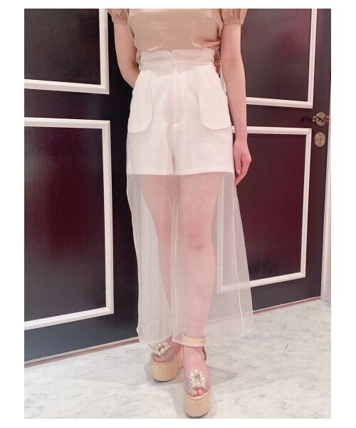 透け感のあるオーガンジー素材が、フェミニンな雰囲気を漂わせるパンツ。キュッと引き締まったウエスト&ワイドシルエットで、スタイルアップ効果にも期待できそう。シンプルにワンカラーでまとめているから、コーディネートに取り入れやすいのも魅力です♪※商品画像はサンプルのため、色味やサイズ等の仕様に変更がある場合がございますので、予めご了承ください。