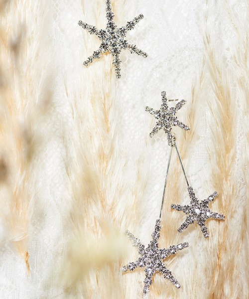 トレンドを取り入れて!大人カジュアルコーデにぴったりのスターモチーフイヤリング。 きらりと輝くストーンが華やかなスターモチーフのピアスは、左右デザインの違うアシンメトリータイプです。 合わせやすく、いつものコーデにプラスすると、アクセントになってくれます。 3.4x3.1cm / 8.5x4.8cm 【MAYGLOBE Veil(メイグローブ ヴェール)】 コットンパールやビジューをふんだんに使ったコスチュームアクセサリー。 パーティシーンにはもちろんデイリーにも使えるデザインが豊富です。 ウェディングアクセサリーにも使えて花嫁さまにも人気のブランドです。 世界中の女性たちが永遠にあこがれ続ける「ローマの休日」 あの一瞬で虜になる可愛らしさを。 ため息が出るほどの甘さを。 もしも出会わなかったら夢はただ夢のままで終わっていた。 出会いは未来。 こんなにも美しく変わっていく。 ★もっとお買い物を楽しむために★ ★商品のお気に入り登録 お気に入り登録した商品は、セールの通知、ラスト1点の通知、完売カラーの再入荷通知などを受け取ることができます。 ★ブランドのお気に入り登録 新商品の発売や再入荷、タイムセールの通知など、ottilie取扱いブランドのお得な情報を受け取ることができます。