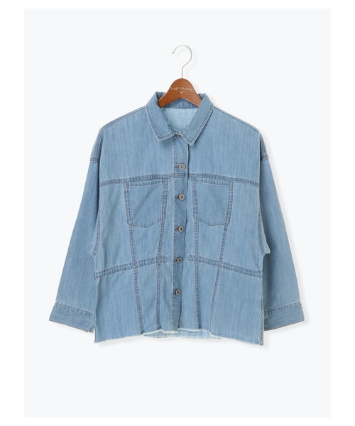 薄手のライトデニムで軽やかに仕上げたジャケット。 シンプルながらもステッチワークがアクセントに映える、メリハリ感のあるデザイン◎ ドロップショルダーとゆったりめシルエットで、ラフに羽織ることができる、スタイリングの手軽さも魅力です。