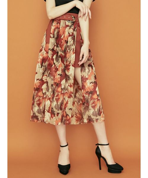▽チュールから程よく見える肌がsexy。 華やかなSTYLINGに仕上がるスカート◎ ◆ポイント 大胆な柄のチュールがレイヤードされたスカート。 軽いチュールの素材感と程よい足見えデザインが 女性らしさをぐっとUPしてくれます。 ちゅるんとした丸みのあるバックルは、 ベルトの色ごとにカラーを変えています◎ 1枚で華やかに仕上がるスカートです。 ◆コーデ シンプルなトップスとの相性が◎