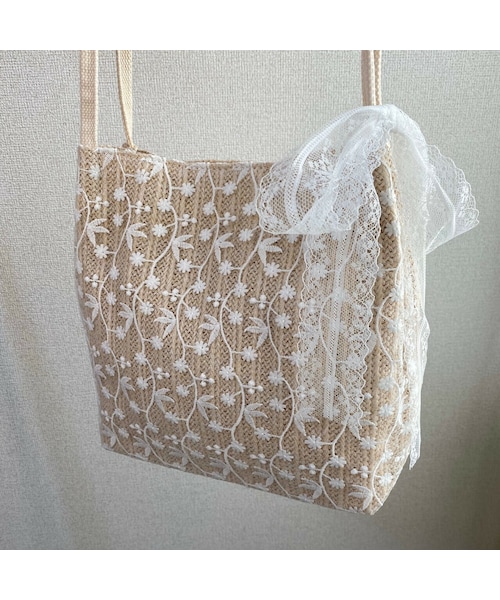 レース付きカゴトート 花柄レースを施したガーリーなデザイン♡ 春夏コーデにぴったり◎ 内側にチャック付きポケットと チャックなしポケットが1つずつあります! ■カラー:ホワイト ■サイズ:横幅(上部)約21cm 横幅(下部)約26cm 高さ約27cm 厚さ約12cm ※数センチの誤差が生じる場合あり ※裏地ありです。 ※決済から2週間前後でのお届けとなります。 ※仕入れ工場によりサイズが記載と異なる場合がございます。 ※在庫状況によりキャンセルさせていただく場合がございます。