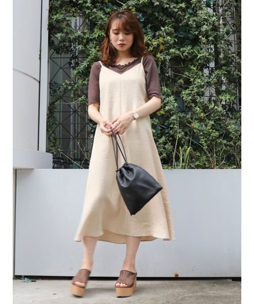 サラッとしたサテン地のワンピース 【アイテム】細目のキャミ紐で上半身を美しく見せ、少し末広がりになったデザインで程良い甘さを演出。後方には細リボンを設けて、後ろ姿も抜かりないデザインを施しています 少しシワがかったツヤの控え目なサテン地を使用して夏の暑い時期のカットソーにも万能に対応できる様、カジュアルな風合いです。 【スタイリング】 ノースリニットなどのシンプルなスタイリングがお勧めです。 縦長効果があり抜け感が出て、大人っぽく着こなして頂けます。 シアー感のあるカットソーなどのスタイリングも涼し気に見せる事が出来、夏場にピッタリです。 【気になるITEMは♡お気に入り登録】 ♡ボタンと押すと簡単にお気に入り登録されます◎ 完売アイテムの再入荷やセール情報も! 気になるITEMはぽちっと♡
